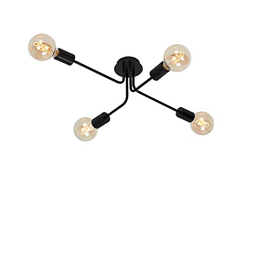 Vintage taklampa svart metall E27 retro, 6 lampor, taklampa, svart, Sputnik ljuskrona, taklampa för matsal, matbord, hall, restaurang, vardagsrum, hotell, café osv. (utan ljuskälla)