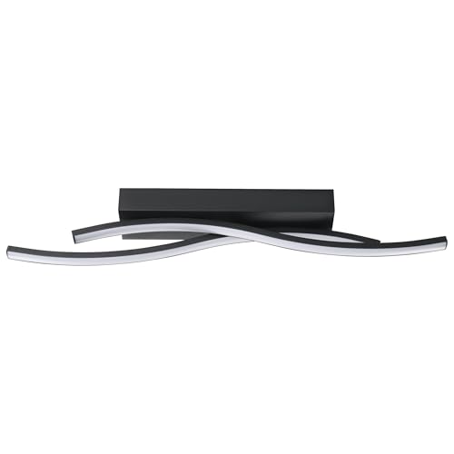EGLO Viloria LED-taklampa, böjd taklampa, vardagsrum, svart metall och vit plast, varmvit, 56,5 cm
