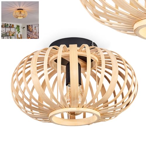 Oravi taklampa, taklampa i metall, svart, med bambu/träskärm, Ø 30 cm, 1-lampa, E27-fäste, Modernt ljus med ljusspel, utan glödlampa