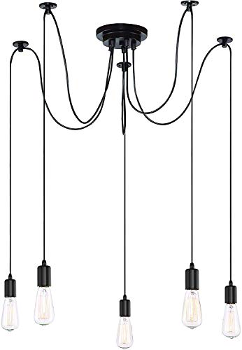 iDEGU Modern och retro pendellampa, 5 armar gör-det-själv spindelljuskrona kreativ justerbar 150 cm vintage taklampa med E27-uttag, svart (5 lampor)