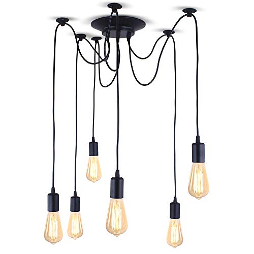 iDEGU Modern och retro pendellampa, 6 armar gör-det-själv spindelljuskrona kreativ justerbar 150 cm vintage taklampa med E27-uttag, svart (6 lampor)