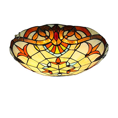 ACHNC Tiffany taklampa vintage, klassisk barock rund 3-färgad LED taklampa för vardagsrum sovrum hall kök kontor matsal tak belysning handgjord Tiffany Art lampa, 40 cm