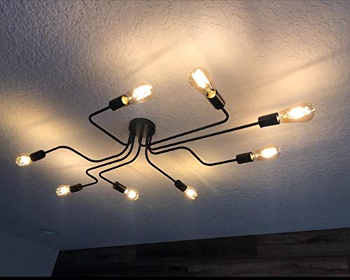LynPon industriella taklampor, svart vintage taklampa, spindellampa med 8 lampor, takbelysningsarmatur för matsal, sovrum, bar