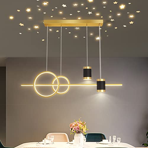 LED hängande taklampor kök Matsalsbelysning Dimbar hängande armatur för barn i sovrummet med fjärrkontroll, modern projektionsdesign 100 cm ljuskrona för vardagsrummet hus på landet (guld-)