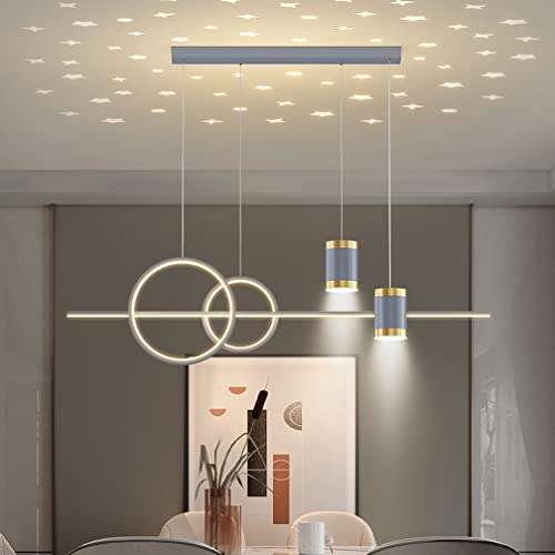 LED hängande taklampor kök Matsalsbelysning Dimbar hängande armatur för barn i sovrummet med fjärrkontroll, modern projektionsdesign 100 cm ljuskrona för vardagsrummet hus på landet (grå)