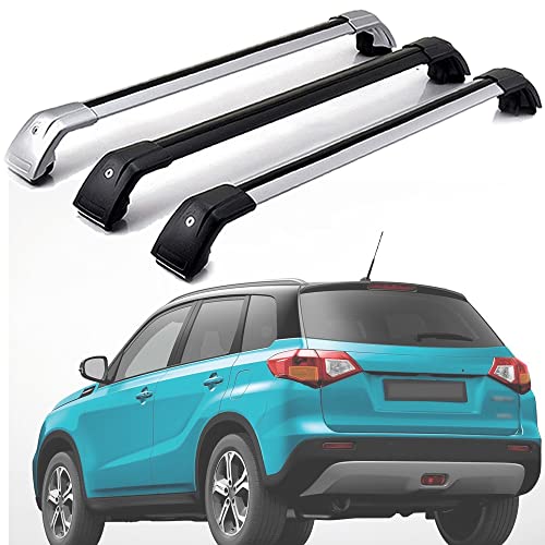 Takräcke för Suzuki Vitara 2015-2019, Takräcke Aluminium Takpakethållare för Bil Bagagehållare Låsbar med Stängda Takskenor, Silver-1 Par