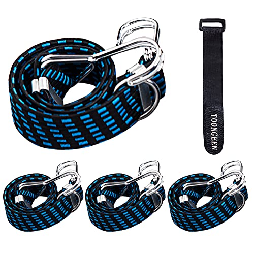 Bungee-snören med krokar, kraftiga 4-pack, premium elastiska bagagebungee remmar lämpliga för cyklar camping bil takräcke, rem, presenningsfästen (53 cm, blå)