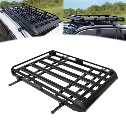 127 x 97 cm takräcke med korg, aluminium bagagehållare 150 pund kapacitet, bagage, lasthållare, relinghållare med barer, universell bil takräcke