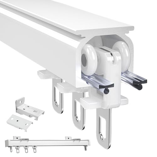 Gardinskena Rumsavdelare Gardinskena Med Tysta Rullar, Rak Takskena För Gardiner, Svartvit Aluminium Gardinskena Tak- Eller Väggmonterad, Rak Gardinskena(White,5M/16FT)