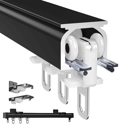 Rumsavdelare Gardinskena Med Tysta Rullar, Rak Takskena För Gardiner, Svart Vit Aluminium Gardinskenor I Tak Eller Vägg, För Upphängning Av Gardinpaneler