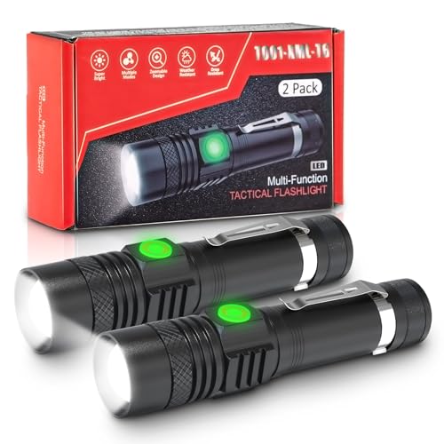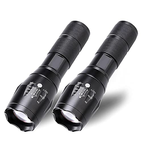 MMOBIEL 2 x LED-taktisk ficklampa - 1 000 lumen, zoombar i 5 lägen, vattentålig, överlevnadsficklampa, camping, nöd- och utomhusficklampa.