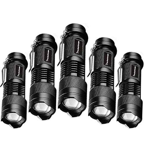 POCKETMAN ficklampa mini 7 W 300 lumen bärbar mini Q5 LED ficklampa taktisk lampa LED ficklampa justerbart fokus zoombart ljus som gåva (5 förpackningar)
