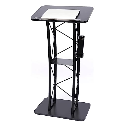 Podium Svart böjd podium golvstående talarstol i metall med mugghållare 40 * 60 * 120CM Podiumställ Kyrkans Talarstol Podier