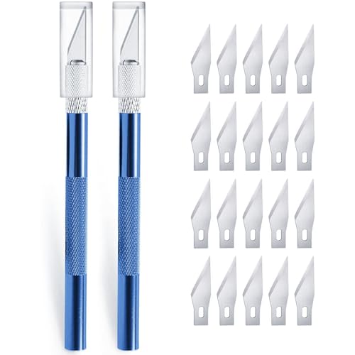 2 stycken fräsar för DIY Art Work Cutting, skalpell med 20 reservblad, pysselkniv, skärkniv, hobbykniv, täljkniv, skulptur, fönsterfilm, lackskyddsfolie (blå)