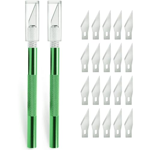 2 stycken fräsar för DIY Art Work Cutting, skalpell med 20 reservblad, pysselkniv, skärkniv, hobbykniv, täljkniv, skulptur, fönsterfilm, lackskyddsfolie (grön)