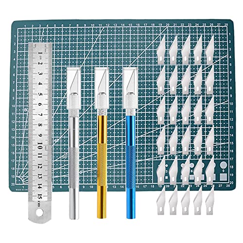 3 stycken fräsar för DIY Art Work Cutting, skalpell med 30 reservblad, pysselkniv, skärkniv, hobbykniv, täljkniv, skulptur, fönsterfilm, lackskyddsfolie