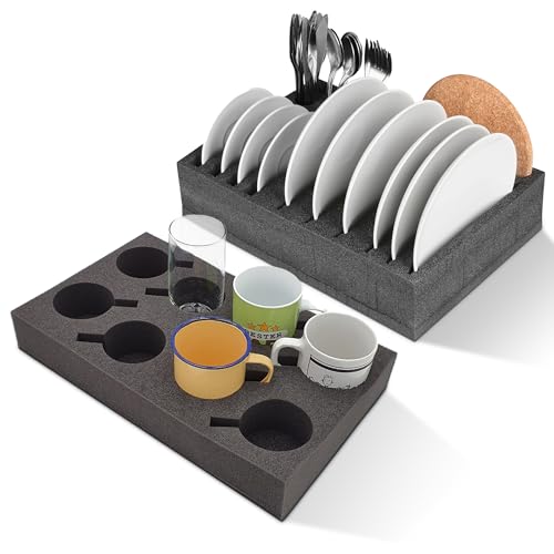 SCHAUMEX® Campingset – tallrik och bestickhållare för 12 tallrikar + mugghållare för 8 delar – lätt och robust för camping, husbilar, husvagnar och båtar