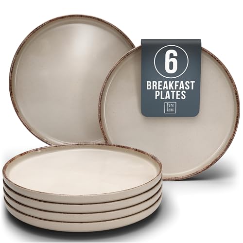 Desserttallrikar 6x Rustic – Servis set 6 personer – Premium Lantlig stil tallrikar i stengods – Small dessert plates, Tallrik – Elegant små plattor beige