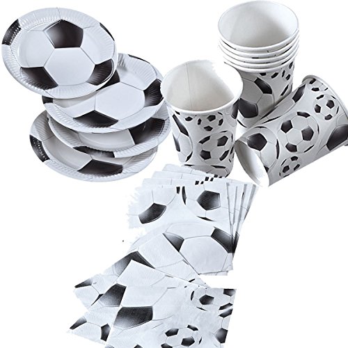 36 delar set fotboll – svart och vit med pappersplattor + servetter + koppar för barns födelsedag tallrik kopp mat kartong rätter fest dekoration enkel användning barn temaspelare värld 2014