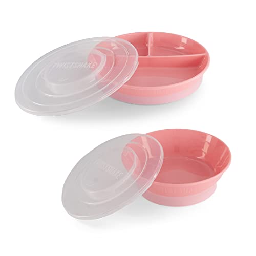 Twistshake Barnservis Set | 3-delad tallrik + Barnskål | BPA-fri Barntallrik och Barnskål | Matträningskit för barn | Babytallrik och Babyskål | Bebisprodukter | Rosa