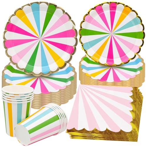 Fahibin 50 stycken regnbågsfest porslinsset, återanvändbara pappersservis set, regnbåge papper koppar servetter tallrik för barn födelsedag, babyshower temafest