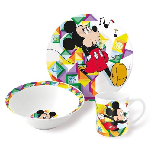 3-delat set av keramik Musse Disney kopp skål tallrik servis för barn i förpackning