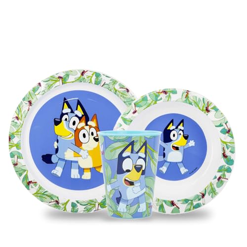 Sorrisini Återanvändbar barnservis, avvänjning skedar, Middagsset för småbarn, skål barn, skålar plast set, barnservis set, middagsset barn, Avvänjning med tallrik, flingskål kopp, tallriksset Bluey