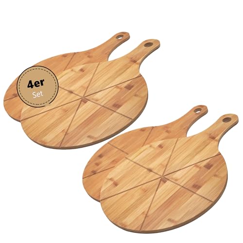 hausleben Pizzatallrik, 33 cm trä (set om 2-3-4) – stor pizzabräda med handtag, tallrik, rund pizzabräda, pizzaskiva, pizzaskärbräda, servetttallrik