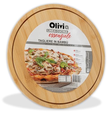 IPEA Rund skärbräda i trä för pizza, ost, salami - 28 cm - multifunktionell cirkulär skärbräda för skärning och servering av aptitretare, bröd och grönsaker i köket eller restaurangen - tallrik -