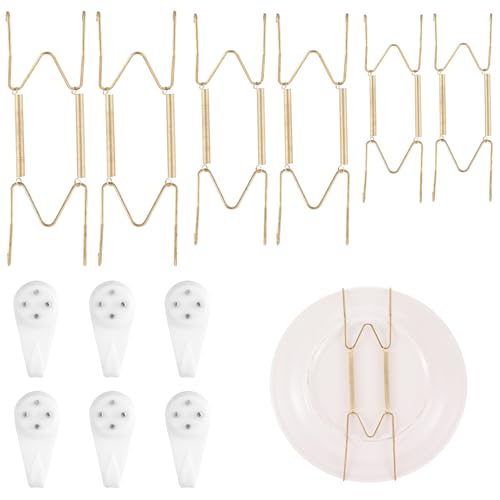 8 stycken tallrikshängare osynliga platthängare, gyllene W-typ tallrikshängare med 10 väggkrokar, för antikt Kina, antika tallrikar och konst