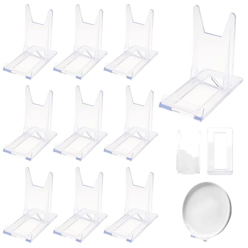10 stycken akrylstativ, plasttallriksstativ, tallriksstativ, transparent 11,5 x 11 x 6 cm, justerbar tallrikshylla, akryltallriksstativ för tallrikar, böcker, fotoramar, elektroniska produkter