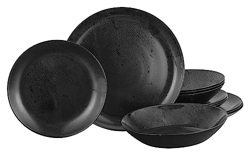 CreaTable, 22979, serie uno black, 12-delat porslinsset, tallriksset av stengods, diskmaskins- och mikrovågsugnssäker, tillverkad i Portugal