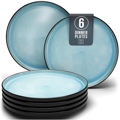 6 x stora stengodstallrikar i Ibiza-serien – elegant mattallrik, tål diskmaskin och mikrovågsugn, reptåliga – snyggt tallriksset för 6 personer i havsblå – servis med mattallrikar