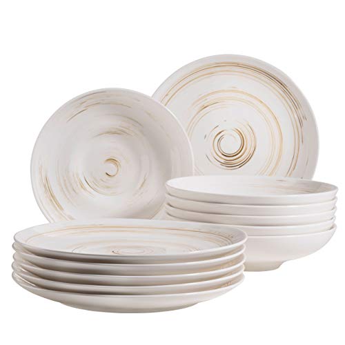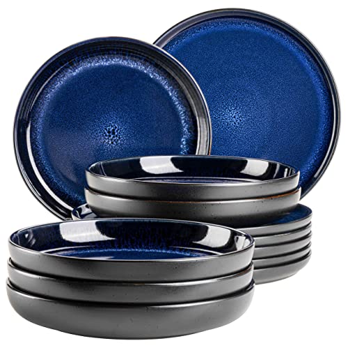 vancasso Sopptallrikar Navia, 12 delar, djupa färgglada tallrikar av stengods, servis, tallriksset, soppskålar