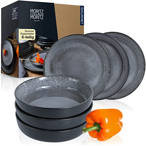 Moritz & Moritz Soppor tallriksset antracit- sopptallrikar för 6 personer – porslin diskmaskins- och mikrovågsugnssäker