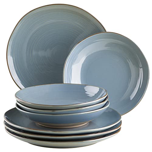 MÄSER Serie Nottingham, vintage tallriksset för 4 personer, 8-delad middagsservis med mattallrikar och sopptallrikar i oregelbundet rund retrolook, stengods, blågrå