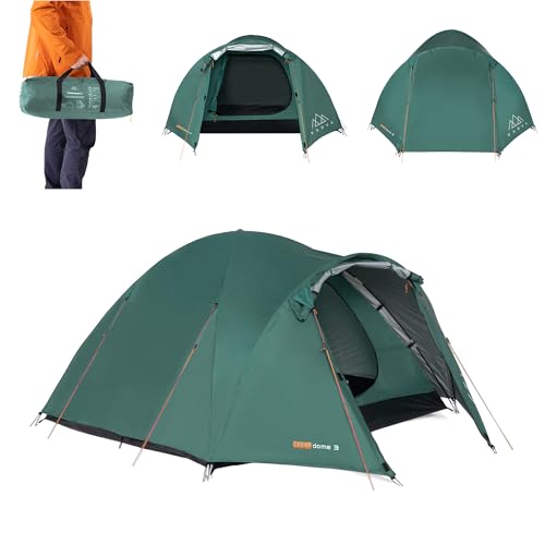 KADVA CAMPdome 3 tält för 3 personer 270 x 210 x 125 cm vattentät, lätt och slitstark glasfiberram perfekt för camping och vandring färg verde