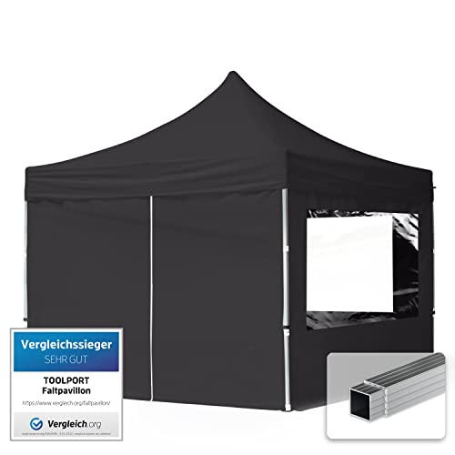 pop-up tält snabbtält 3x3 m - 4 sidodelar hopfällbart tält aluminium paviljong (certifierad) party lusthus svart tak