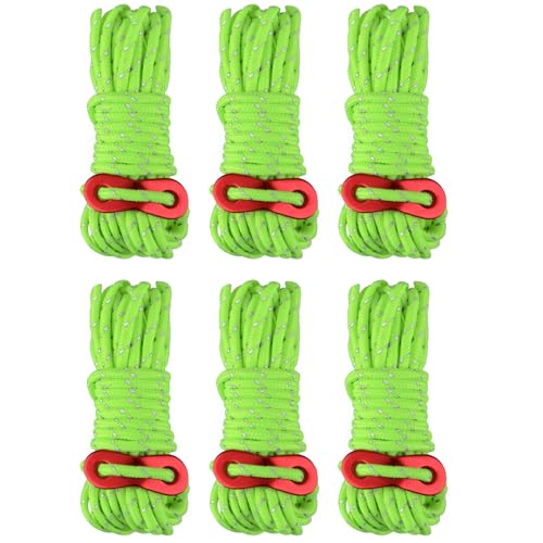 TRIWONDER Reflekterande kille-rep med spännare 4 mm styrrep 4 m tält kille lina tält paracord nylon campingrep för tält presenning (fluorescerande grön – 6 st)