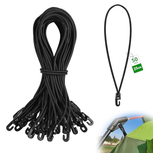 SUPAWAY 50 stycken expanderremmar med krok 25 cm lång multifunktionell gummispännare Ø 4 mm presenningsklämma med krok svart spännfix expanderslingor för camping presenning, tält, släpvagnspresenning