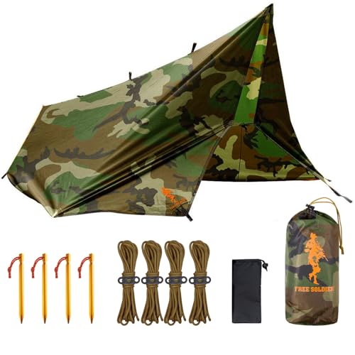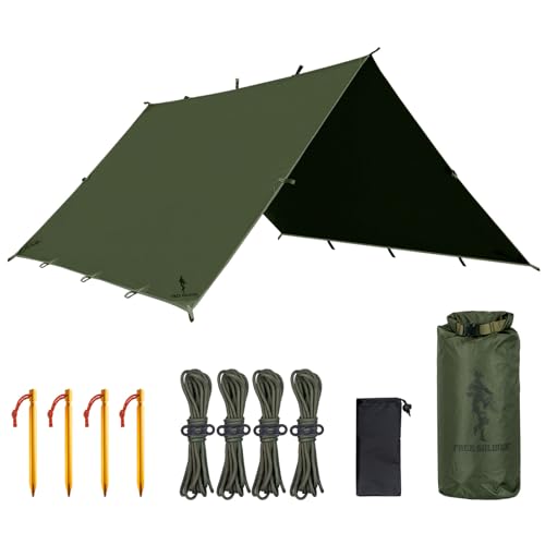 Gratis soldat presenning vattentät 4 x 4 m ultralätt tältpresenningar UV-skydd camping solsegel tält utomhus stor presenning för camping, vandring, utomhusaktiviteter