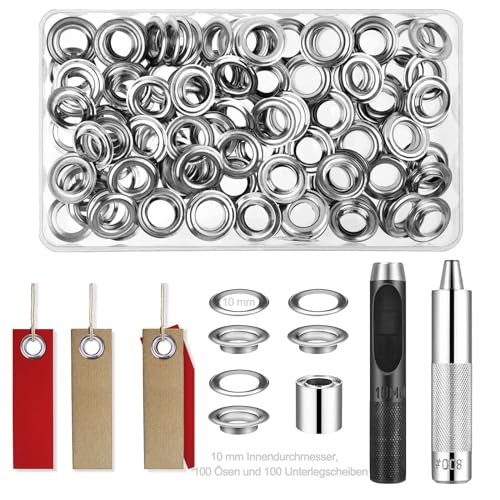 Öljettverktygssats, 100 uppsättningar grommetverktygssats, öljetter verktygssats, 10 mm, öljetter rutor, med 3 delar verktygssats, med förvaringslåda, för skor, bagage, läder, presenning, tält,