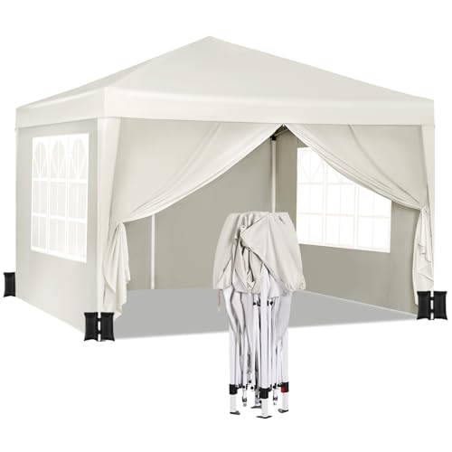WOLTU Återförslutbart trädgårdslusthus 3 x 3 m järn utomhus lusthus höjdjusterbart hopfällbart tält med vattentät presenning, uppsättning med 4 sandsäckar, lätt att montera beige