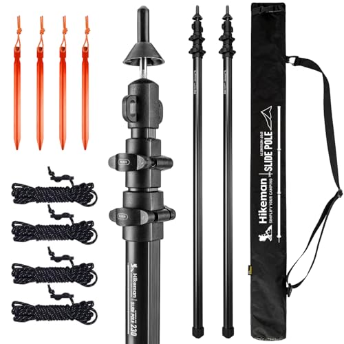 HIKEMAN Tältstång i aluminium – 2,3 m svart, 2 st teleskopisk markis baldakinstång för presenning, tält, markis, camping