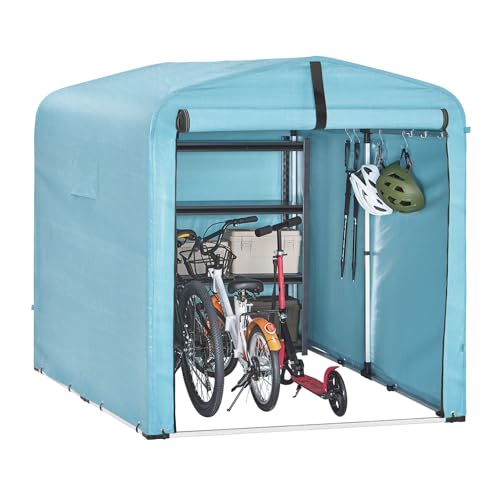 SoBuy Cykelgarage väderbeständigt utrustningsskjul cykelgarage för 2–4 cyklar carport tält med UV-skydd cykelskjul för regnskydd motorcykel garage trädgårdshus blå 159 x 165 x 219 cm KLS11-L-BL