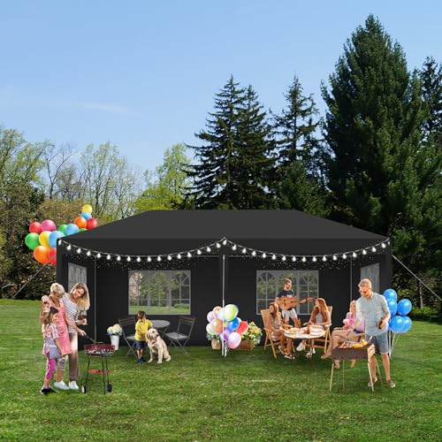 UISEBRT Paviljong med sidoväggar och tak, vattentät, UV-skydd, festtält, trädgårdspaviljong, tält för trädgård, festival, camping, fest (antracit, 3 x 6 m)
