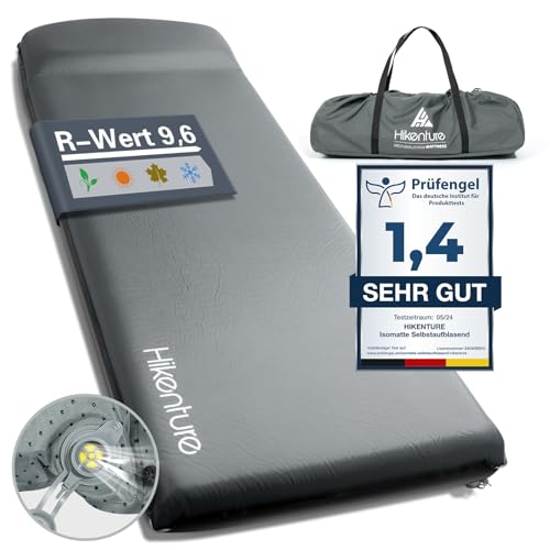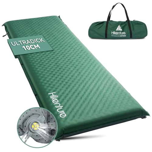HIKENTURE Liggunderlag självuppblåsande med inbyggd elektrisk pump, 10 cm tjock campingmadrass av skum, 9,5 R-värde, uppblåsbar luftmadrass, sovmatta för utomhusbruk, tält, vandring, bil