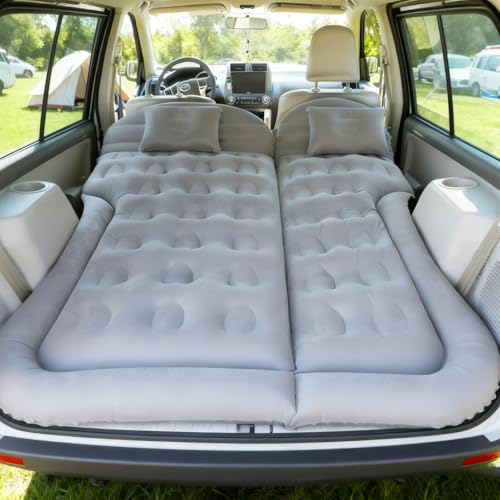Liphier SUV Luftmadrass, bilsäng, uppblåsbar madrass för lastbils baksäte – vikbar luftmadrass med flockyta och elektrisk pump, bärbar luftbädd för hem, tält och camping resor – ljusgrå