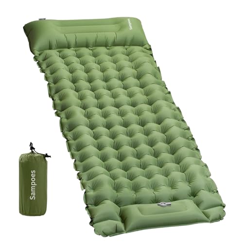 Sampoes Liggunderlag självuppblåsande, 10 cm tjock luftmadrass självuppblåsande, campingmadrass med fotpump, utomhusluftmadrass uppblåsbar för vandring, resor, tält