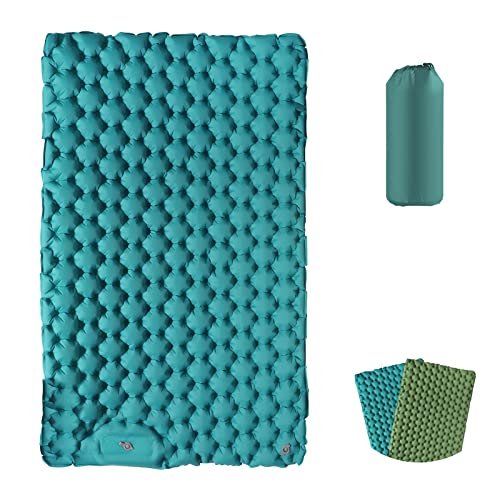 HIKENTURE Liggunderlag självuppblåsande, 12 cm dubbel matta ultralätt, campingmatta för 2 personer, uppblåsbar sovmatta, luftmadrass med fotpump för tält, vandring – mörkgrön A3